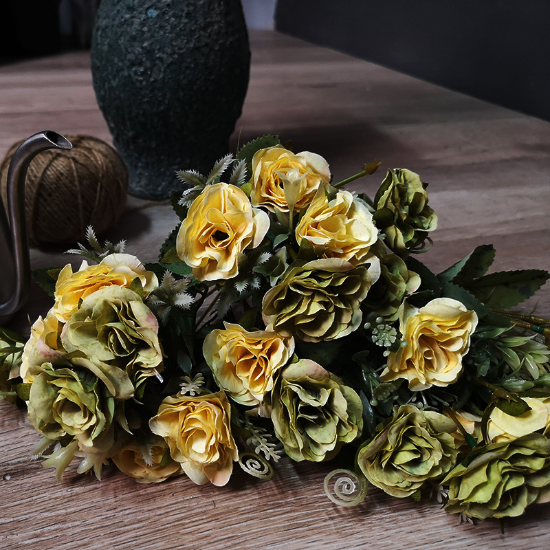 生地の人工的なアジサイのローズの食堂デスクトップTVのキャビネットのフラワー アレンジメント